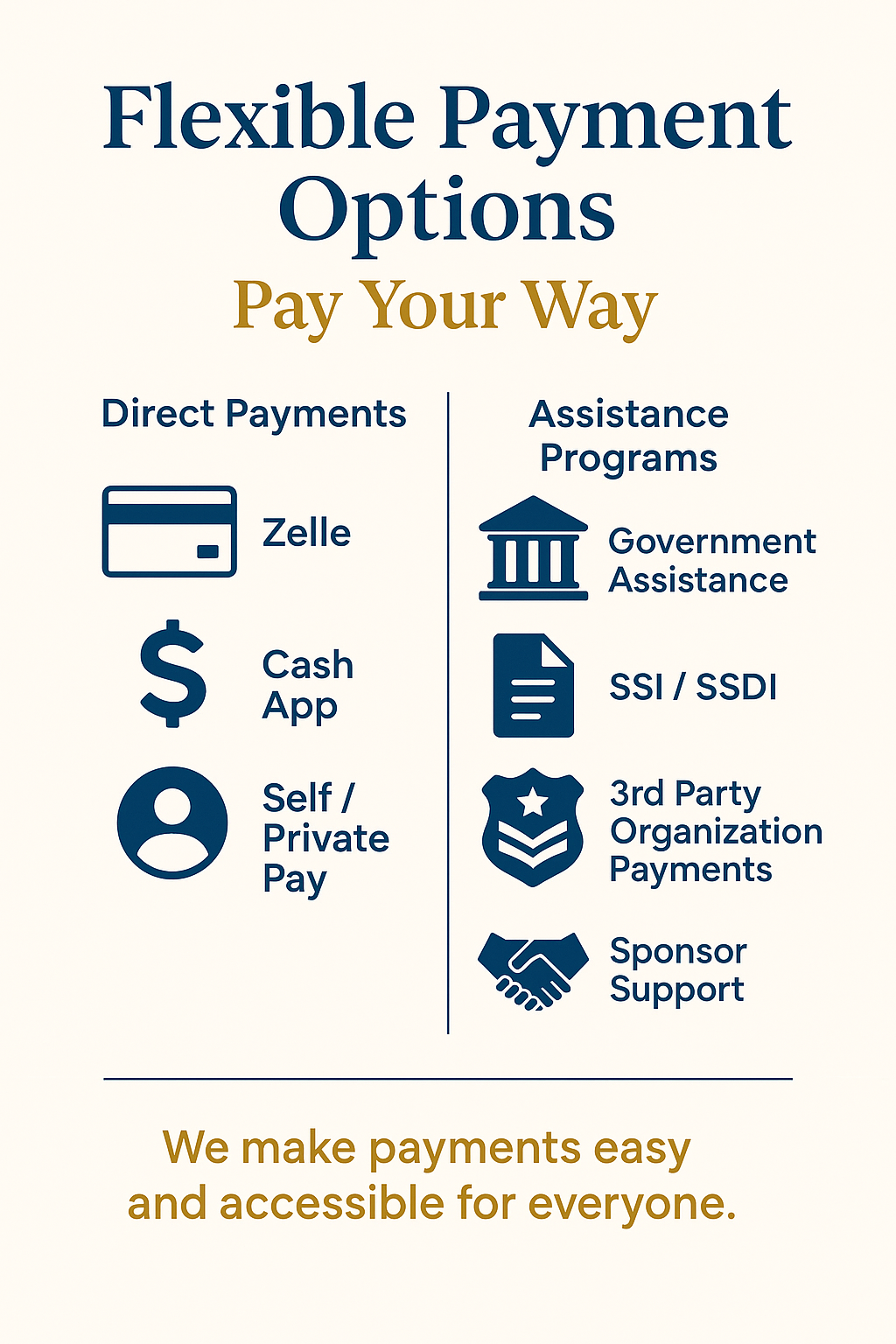 • Safe & Supportive Community – 24/7 monitored, drug- and alcohol-free environment
